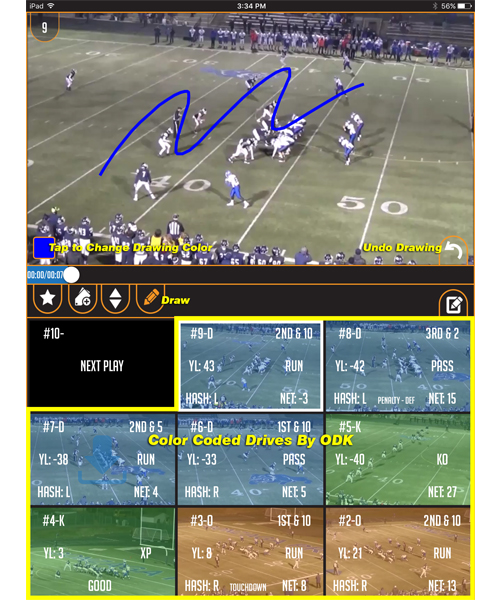 The first soon-to-be released feature will allow coaches to draw on top of a paused play in the main viewing screen, save the screenshot to that particular play clip, and all screenshots associated with that play will automatically be shared among each coach with an iPad.