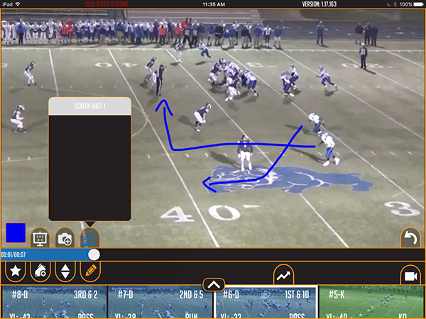 It's easy to imagine the type of scenario this would be useful in. A coach on the sideline might pause a play, draw on the starting formation in order to highlight a modification idea, then radio to another coach in the Pressbox and inform him that the last play has a screenshot of his idea. This allows for seamless communication between coaches and gives them fast, on-the-fly power to do their jobs better.