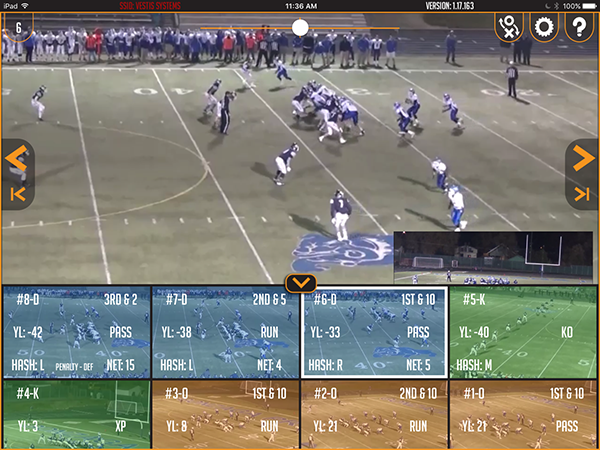Thirdly, we’ve made some much-requested user interface enhancements to make your operation of the app easier and more intuitive. Newly added “skip” buttons allow you to quickly move back and forth between subsequent and prior plays. This comes in very handy while holding the iPad in landscape mode (on its side) as your stream of clips below have been suppressed so as to provide the ideal window size of the replay you’re watching. Therefore, it’s very helpful to have easy-to-access buttons on the side of the play allowing you to move through your stream of clips without altering the viewing screen.